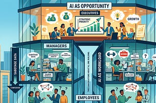 Executives and managers aren't disagreeing about AI. They're having entirely different discussions.