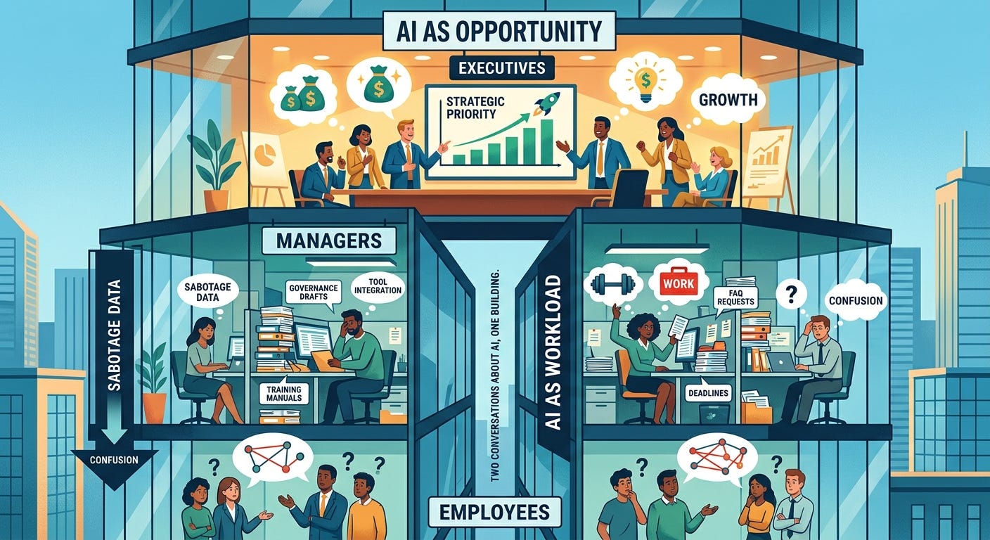 Executives and managers aren't disagreeing about AI. They're having entirely different discussions.