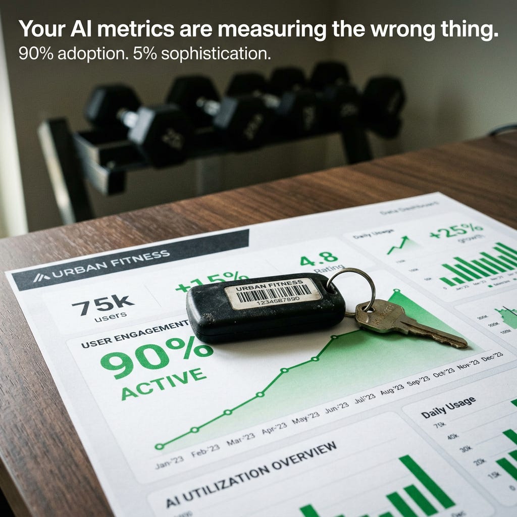 Most organizations measure AI adoption the way they measure gym memberships. How many people signed up. How often they swipe in. Maybe how long they stay. None of which tells you whether anyone is actually getting stronger.